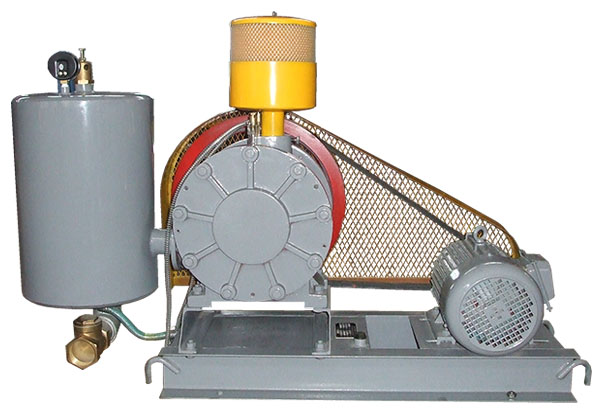 回轉(zhuǎn)式鼓風(fēng)機(jī)靠汽缸內(nèi)偏置的轉(zhuǎn)子偏心運(yùn)轉(zhuǎn),并使轉(zhuǎn)子槽中的葉片之間的容積變化將空氣吸入、壓縮、吐出。在運(yùn)轉(zhuǎn)中利用鼓風(fēng)機(jī)的壓力差自動將潤滑送到滴油嘴,滴入汽缸內(nèi)以減少摩擦及噪聲,同時可保持汽缸內(nèi)氣體不回流。